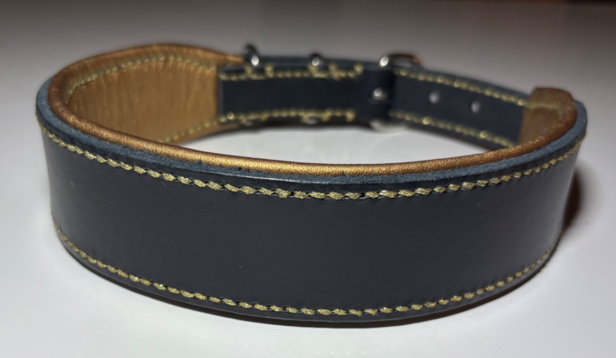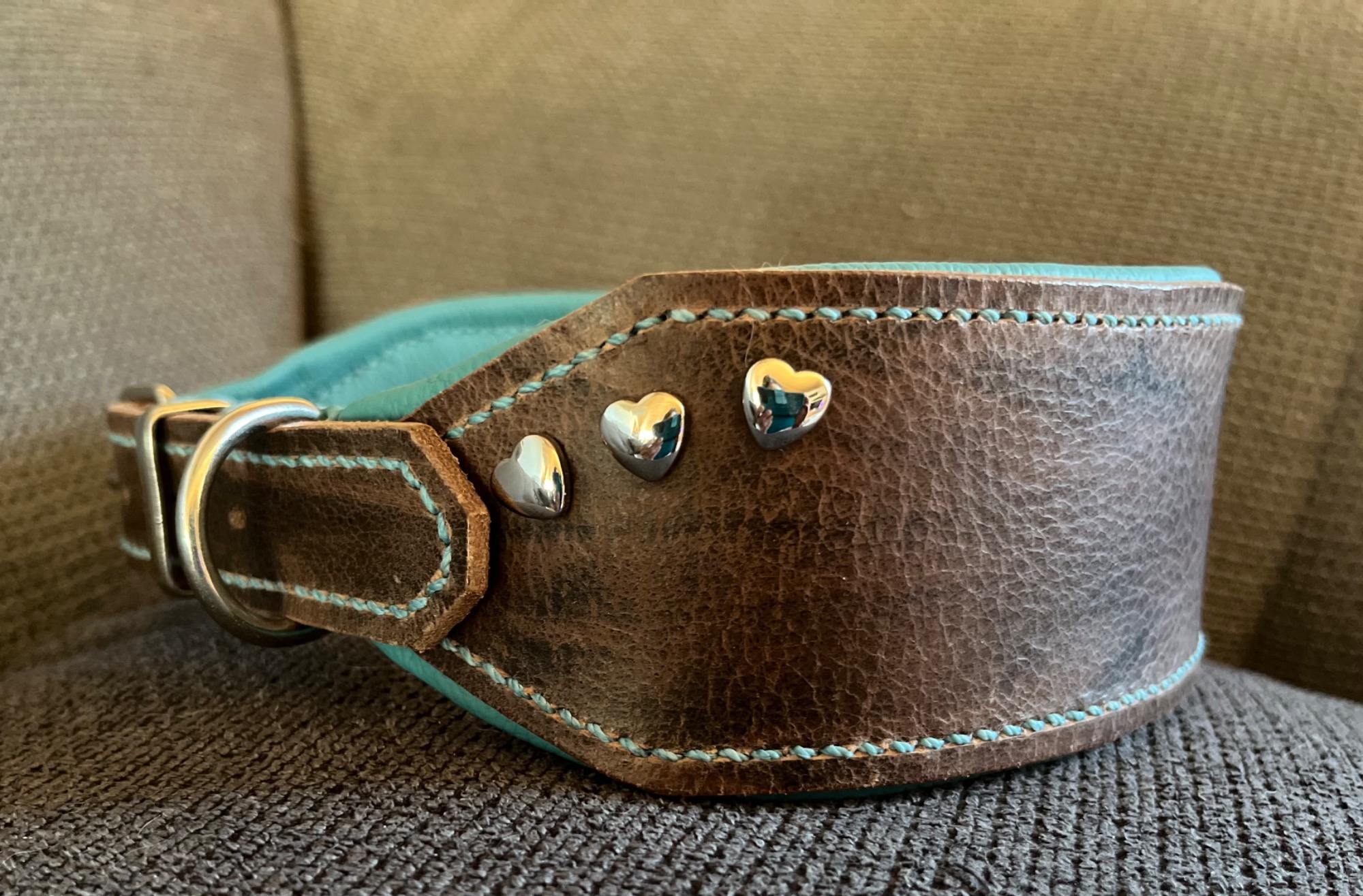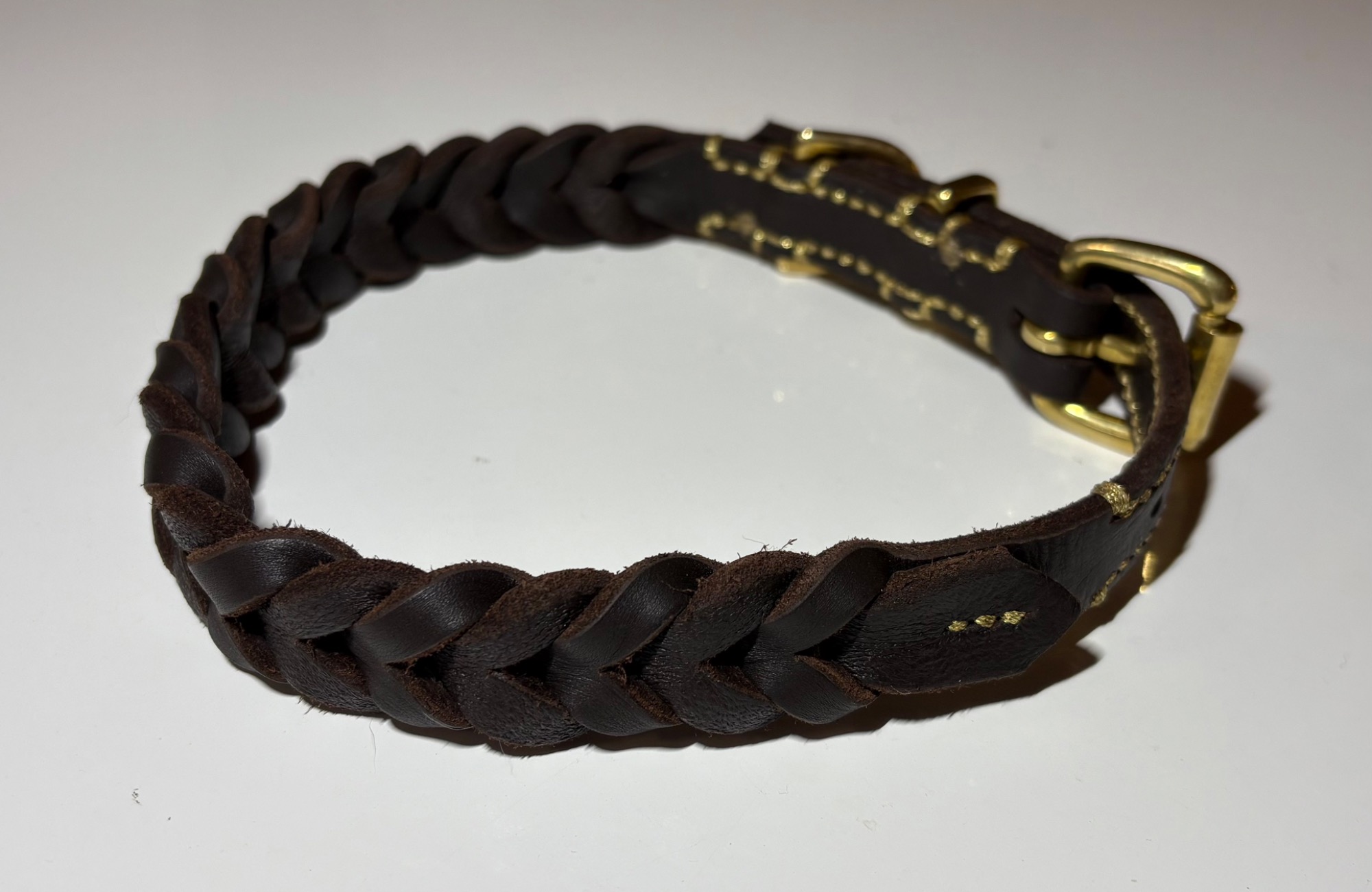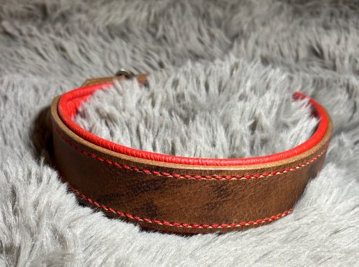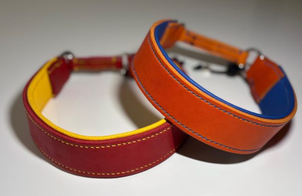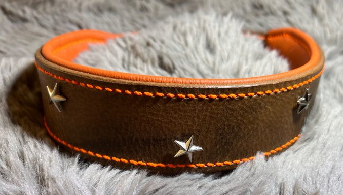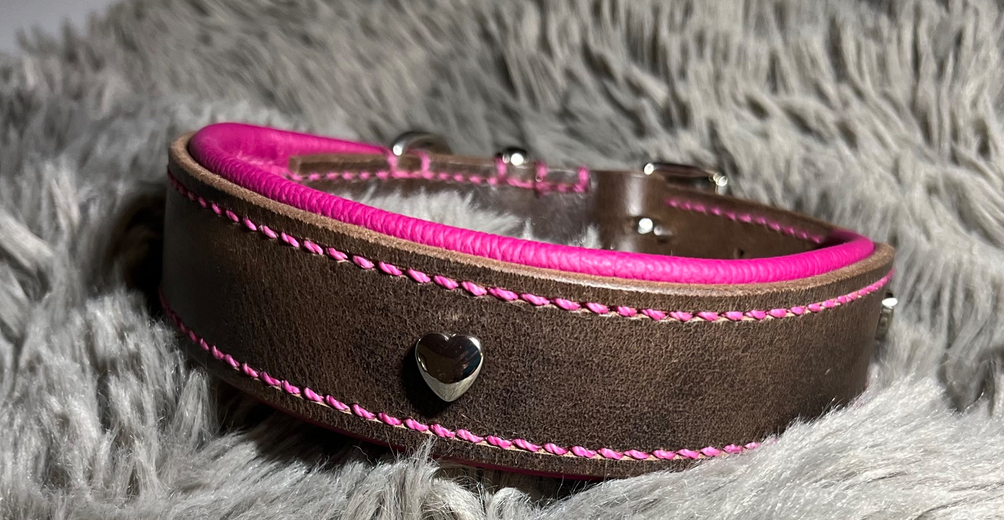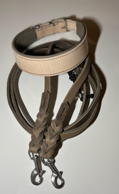 Ich fertige sowohl geflochtene Halsbänder aus Fettleder, als auch gepolsterte Lederhalsbänder an.