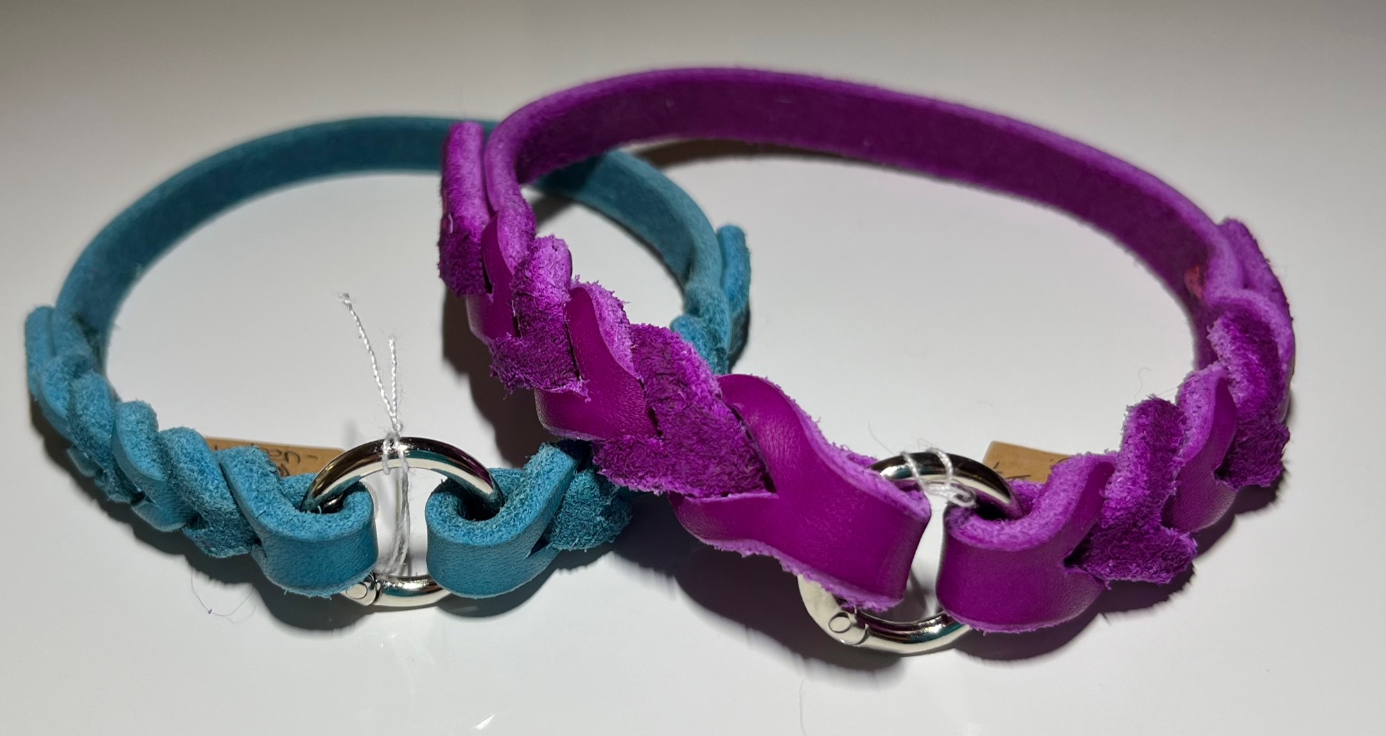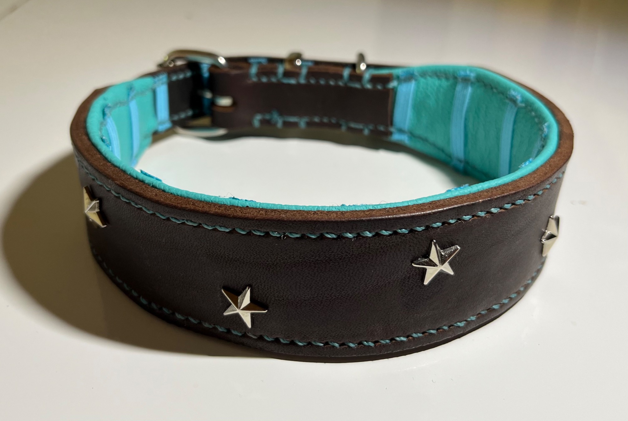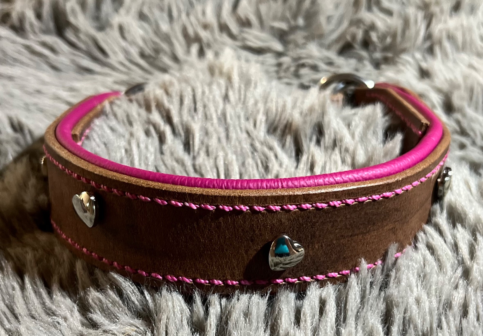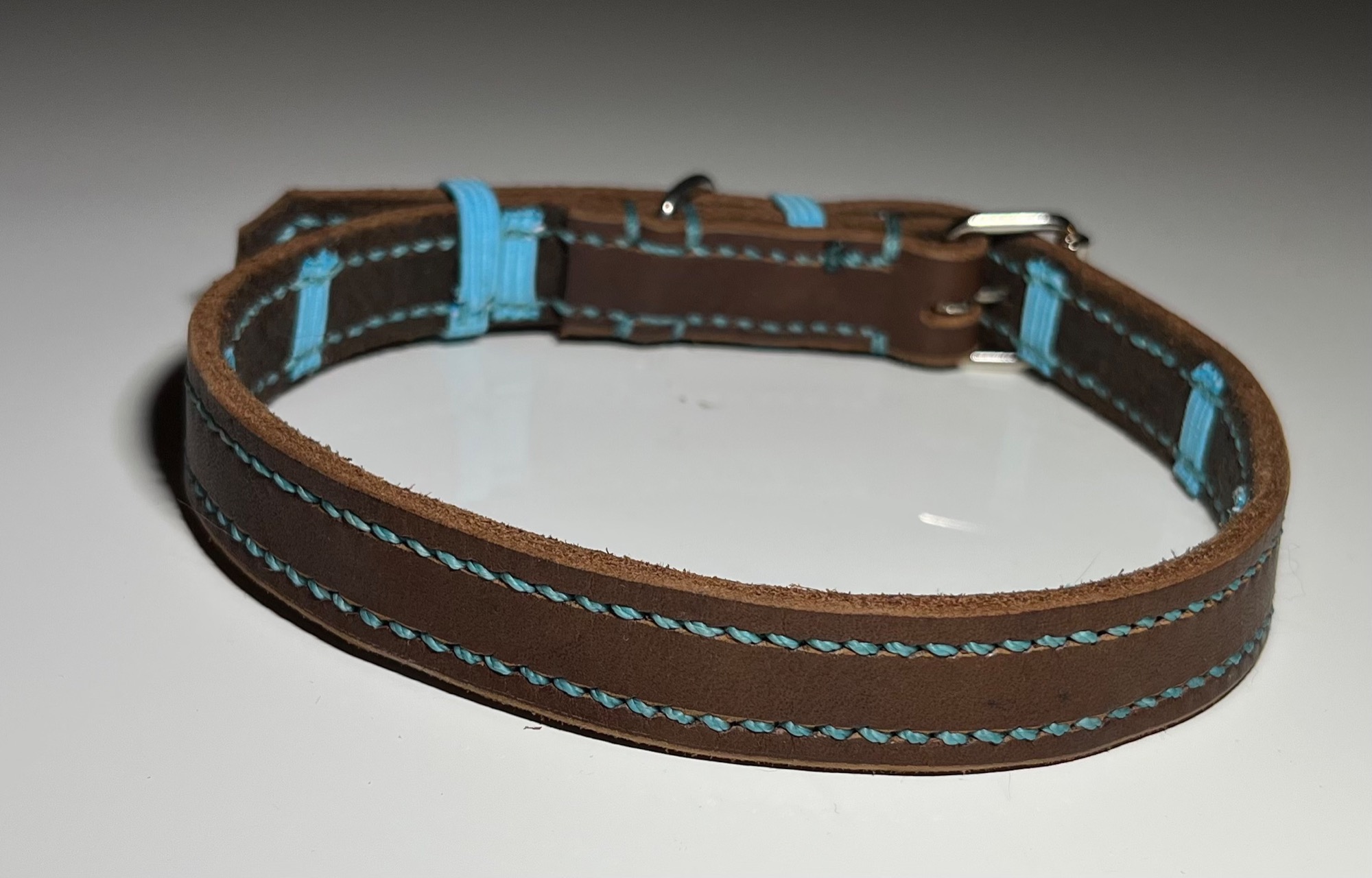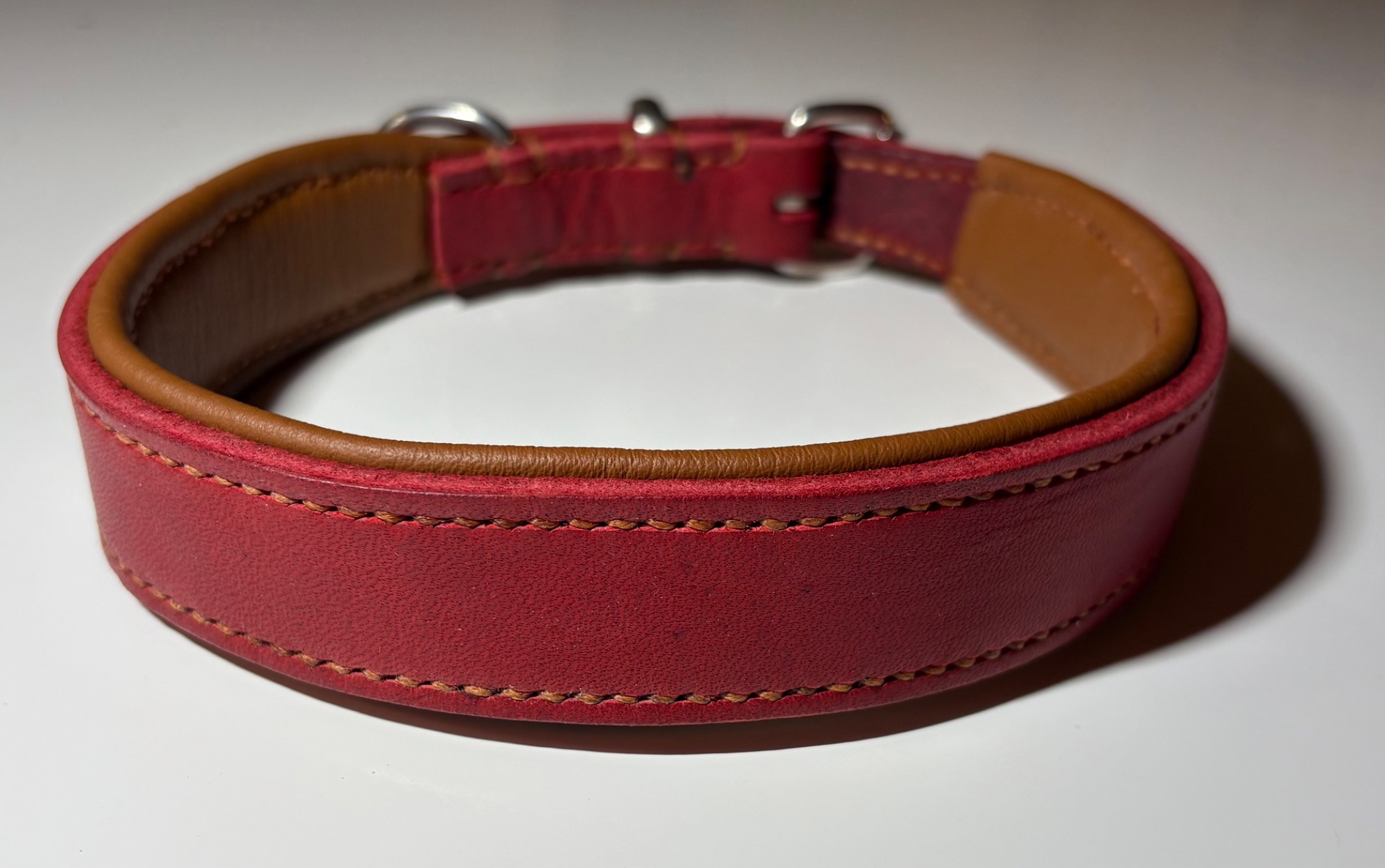 Ich fertige sowohl geflochtene Halsbänder aus Fettleder, als auch gepolsterte Lederhalsbänder an.