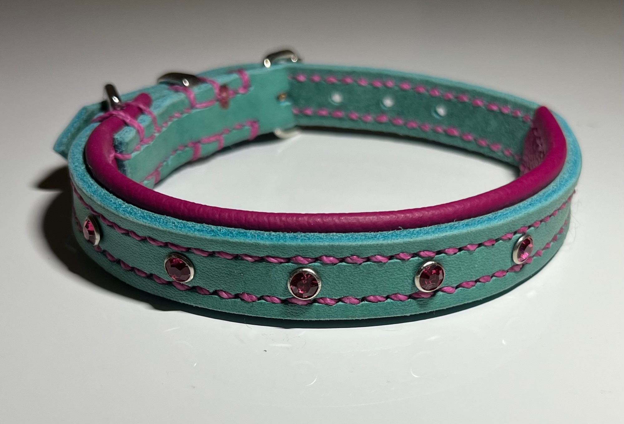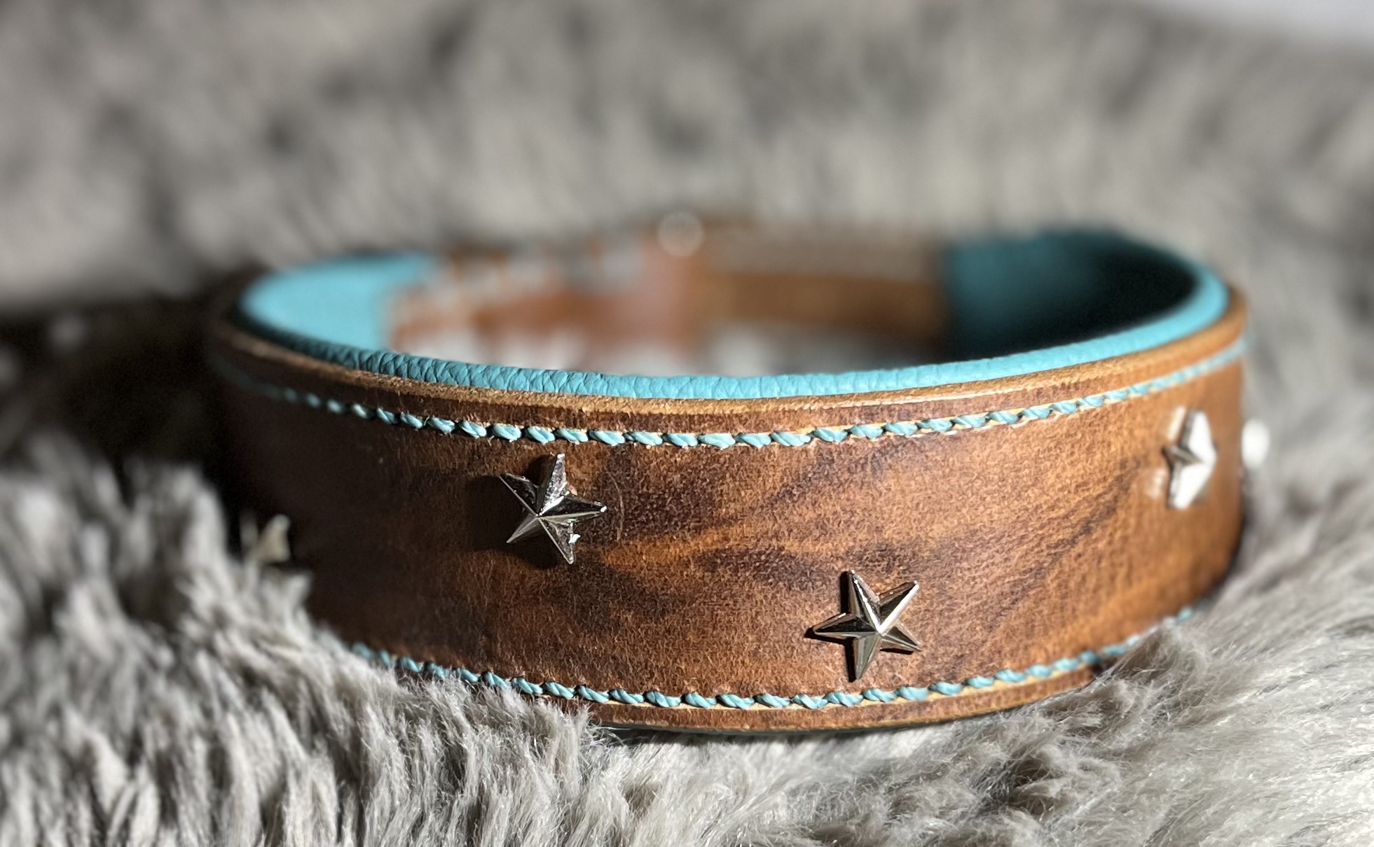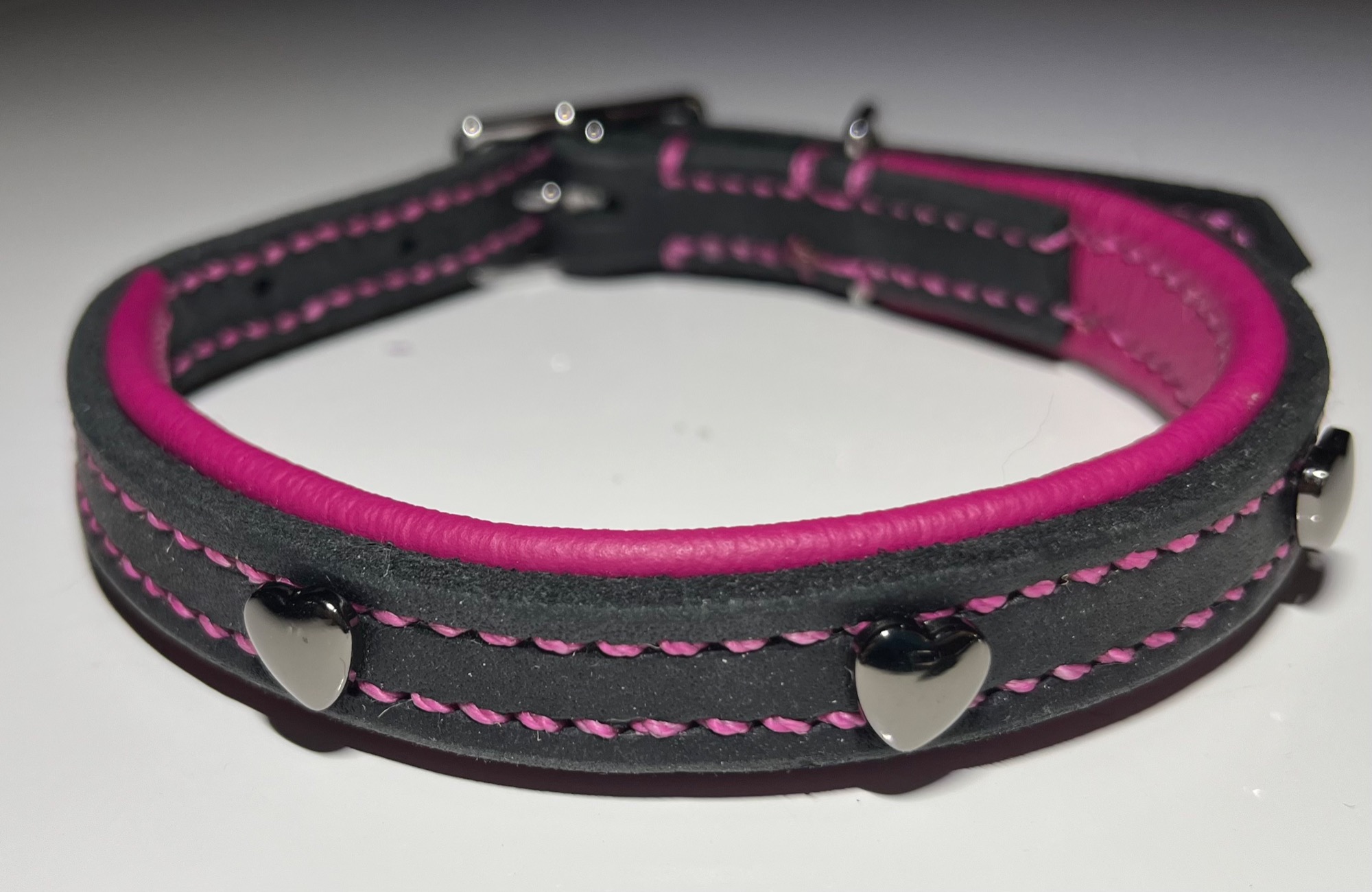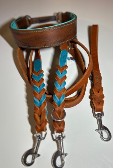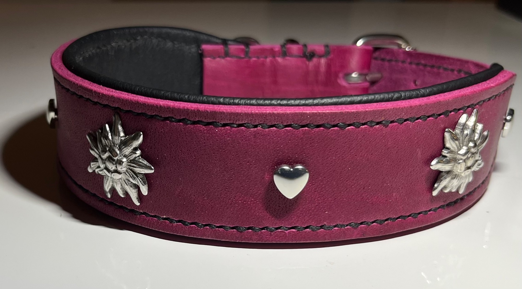 Ich fertige sowohl geflochtene Halsbänder aus Fettleder, als auch gepolsterte Lederhalsbänder an.
