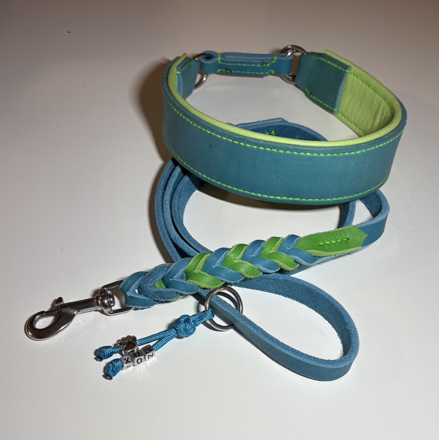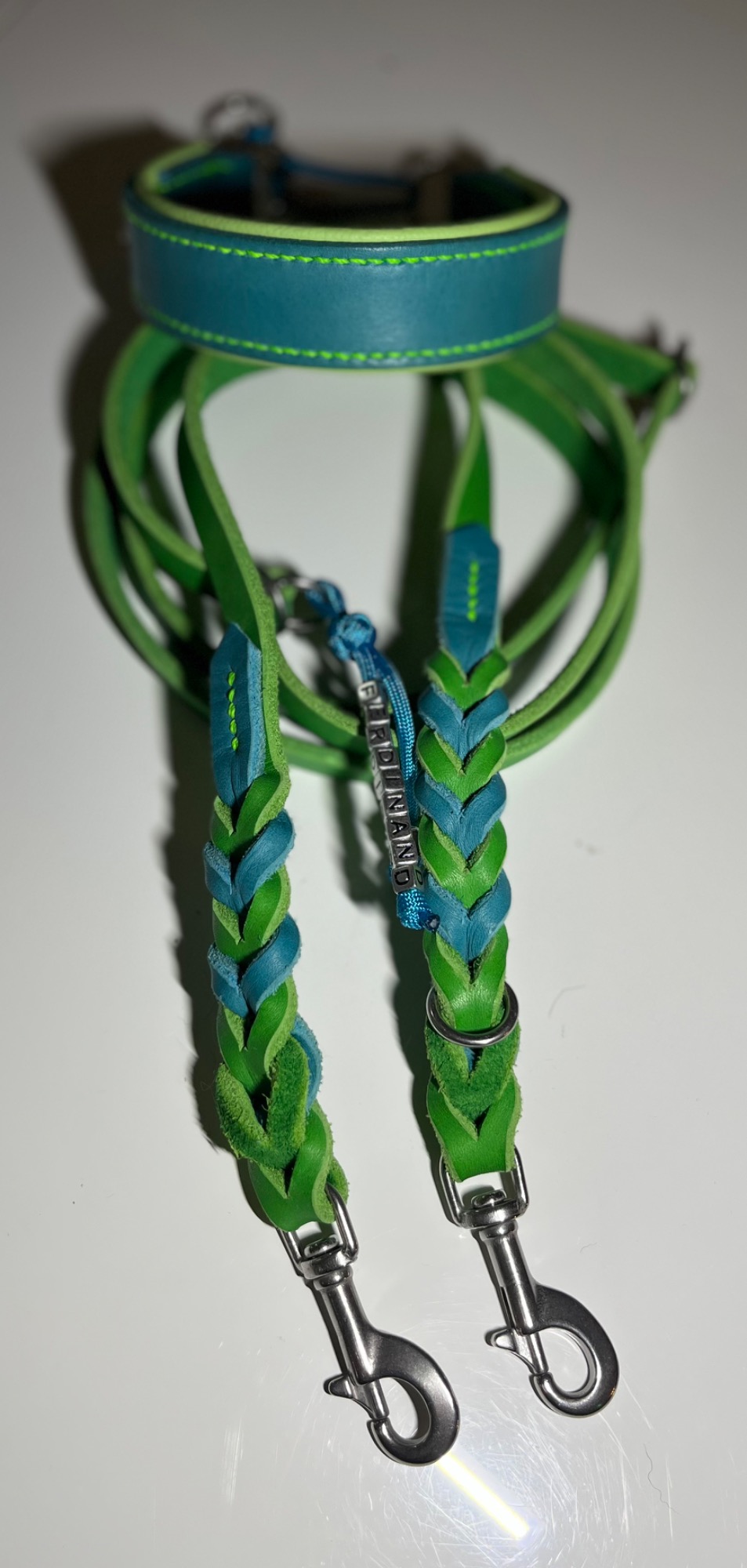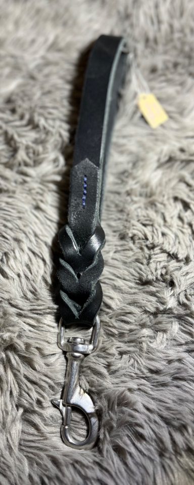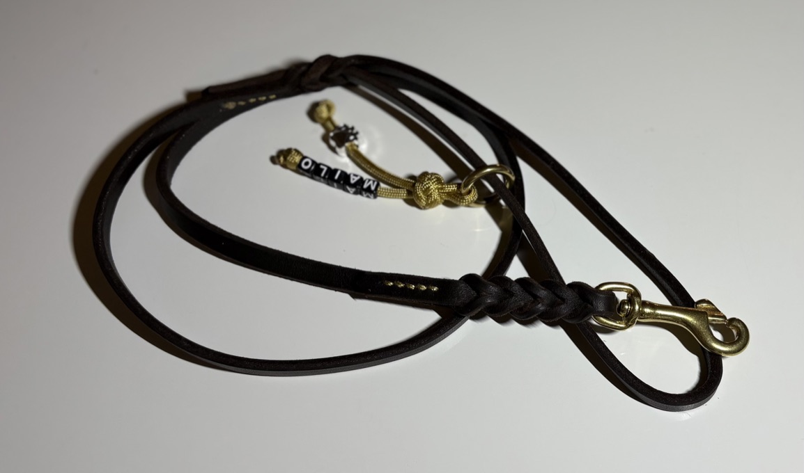 Für Halter großer und kräftiger Hunde fertige ich auch individuelle Kurzführer nach Wunsch an. Diese können entweder direkt in der Leine integriert oder als separates Zubehör hergestellt werden. Bei den seperaten Varianten ist in der Handschlaufe ein loser Ring eingearbeitet, an dem sich eine Leine einfach einhängen lässt. So ist der Kurzführer flexibel mit jedem Halsband- oder Leinenset kombinierbar.