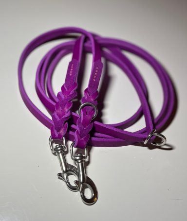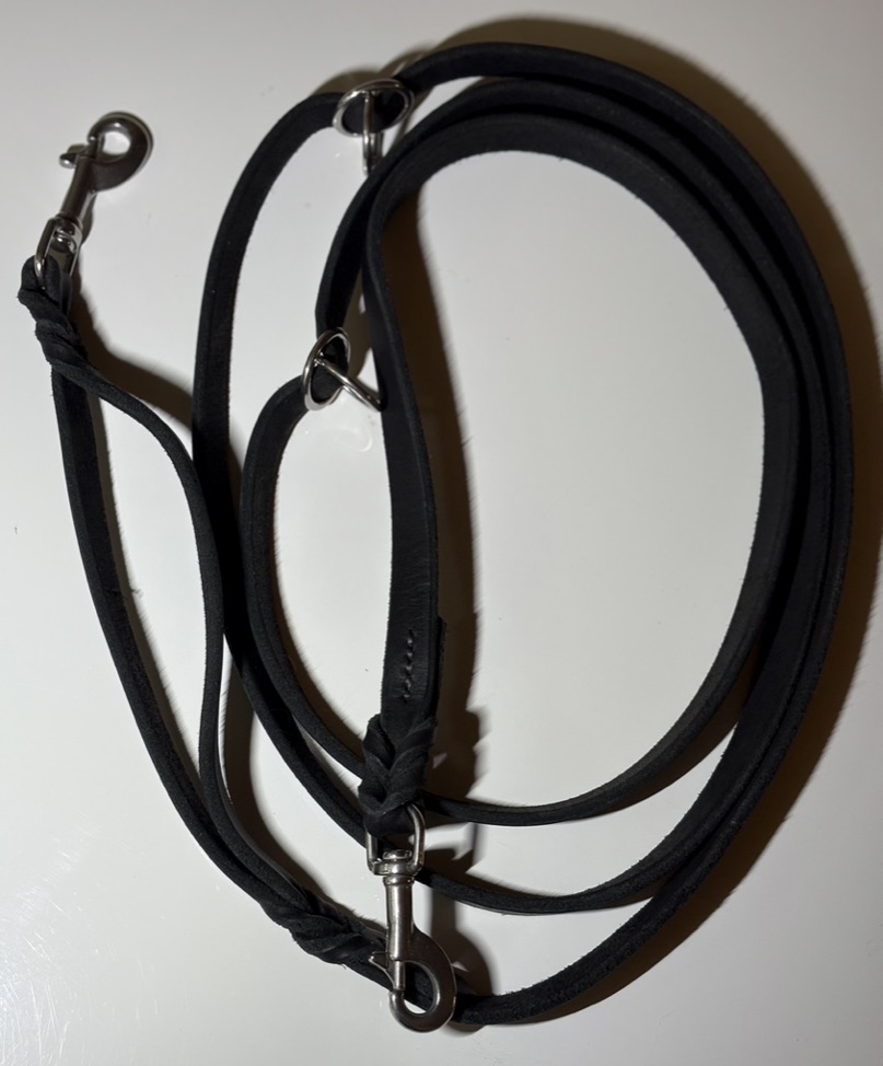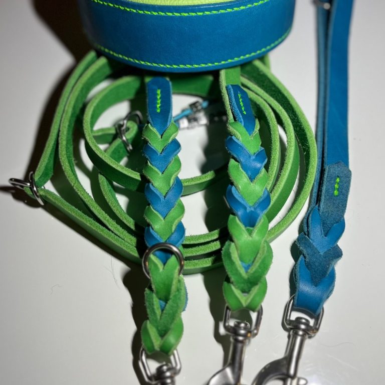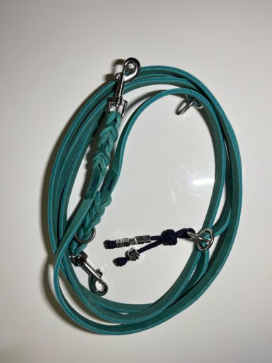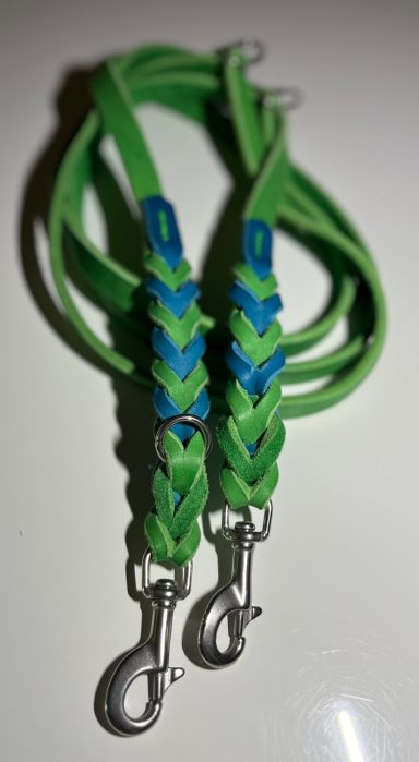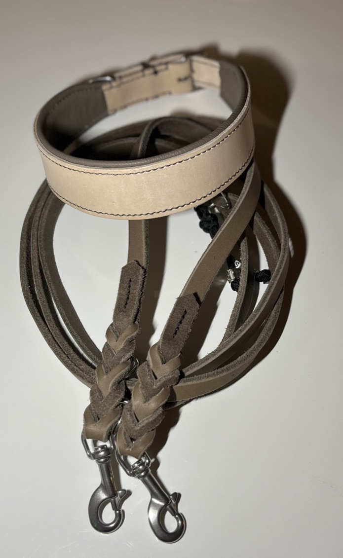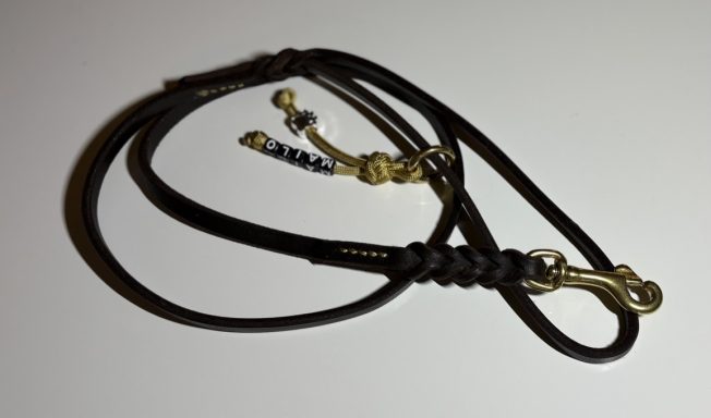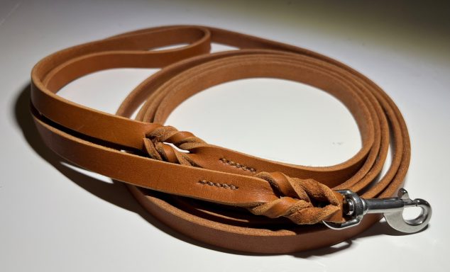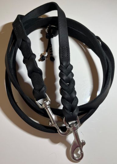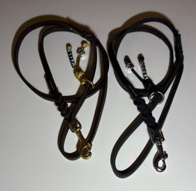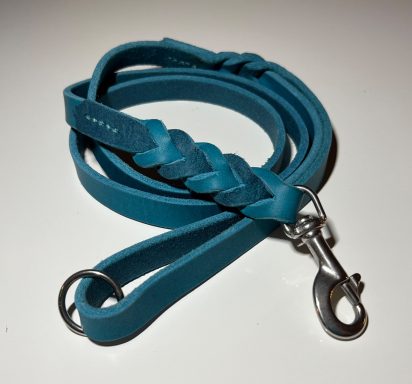 Für meine Leinen verwende ich ausschließlich Fettleder aus Deutschland. Durch die traditionelle Herstellung wird das Leder sehr robust, stabil, griffig, pflegeleicht und sehr weich.