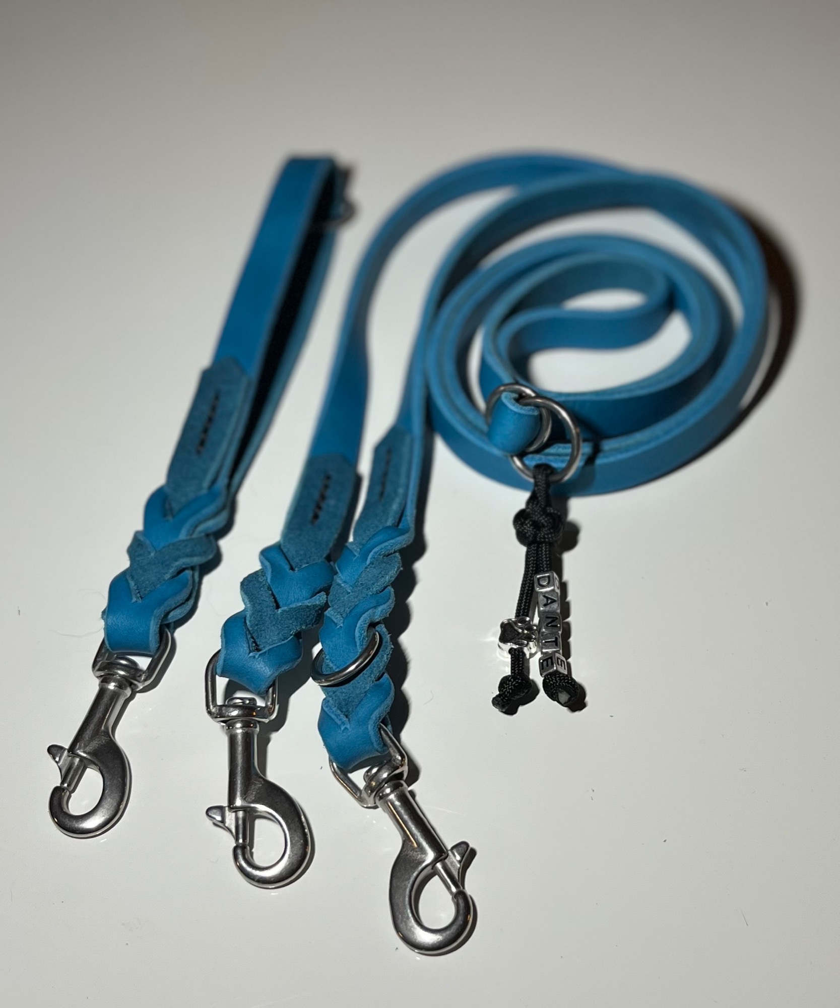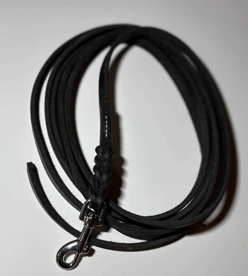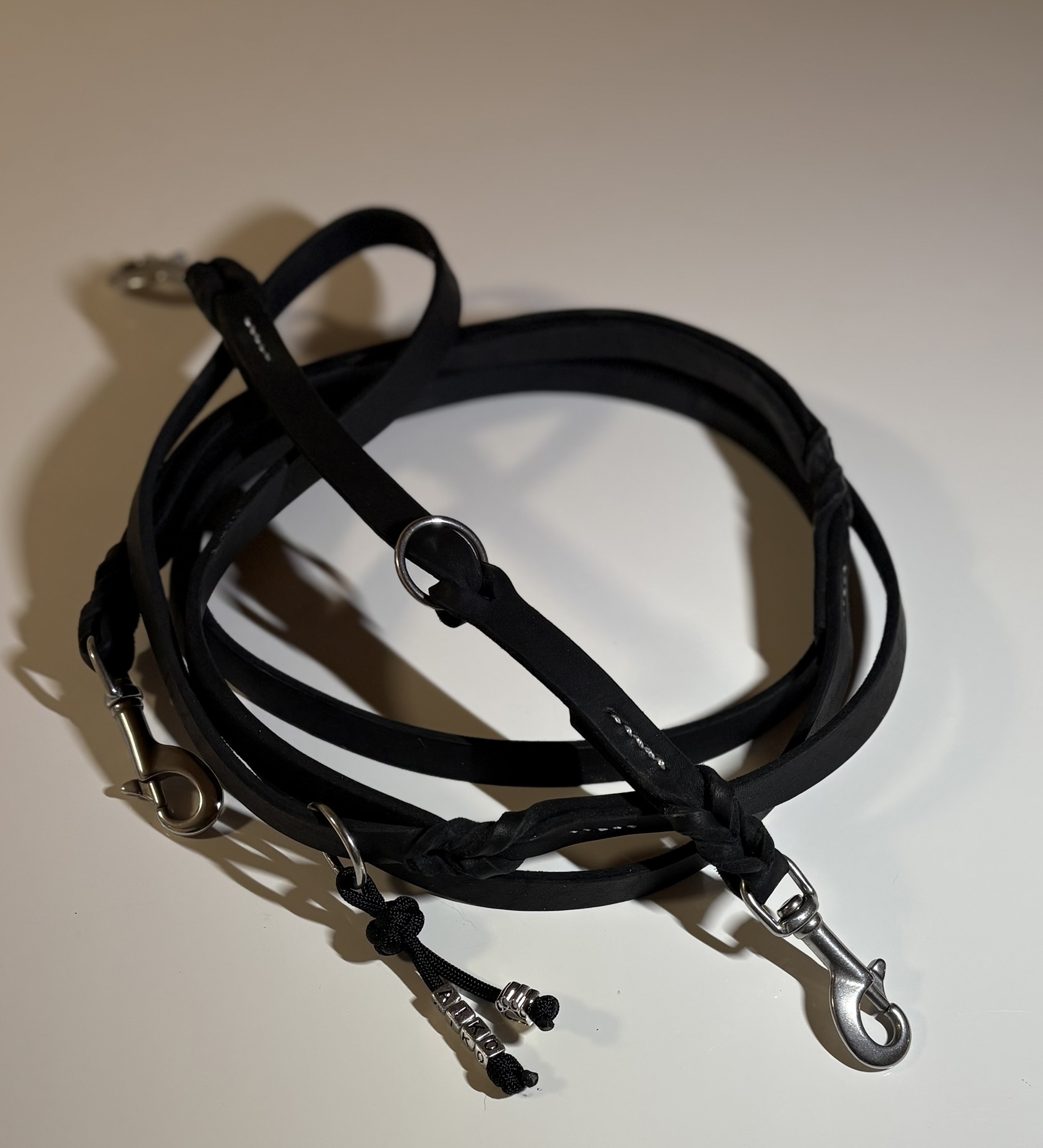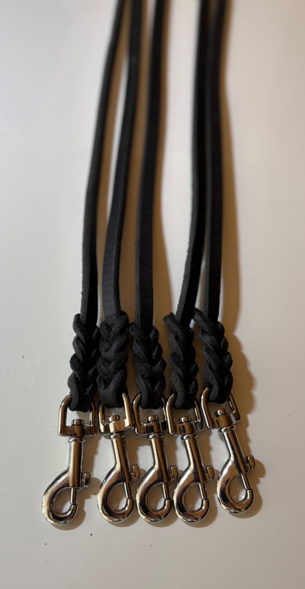 Für meine Leinen verwende ich ausschließlich Fettleder aus Deutschland. Durch die traditionelle Herstellung wird das Leder sehr robust, stabil, griffig, pflegeleicht und sehr weich.