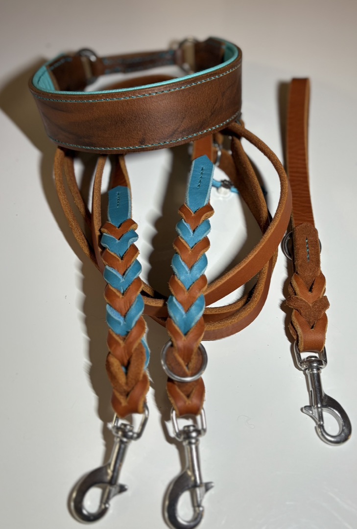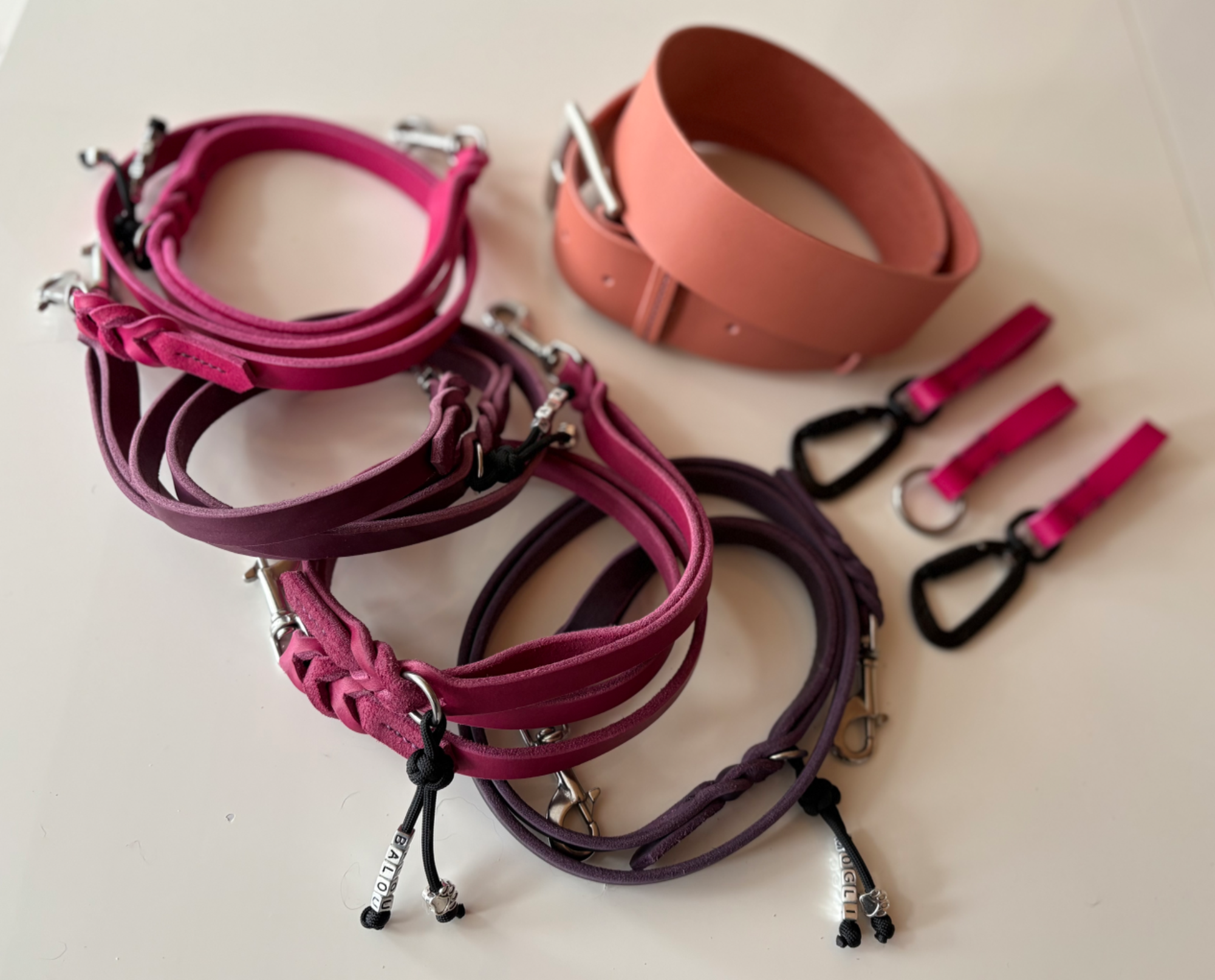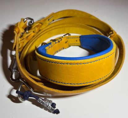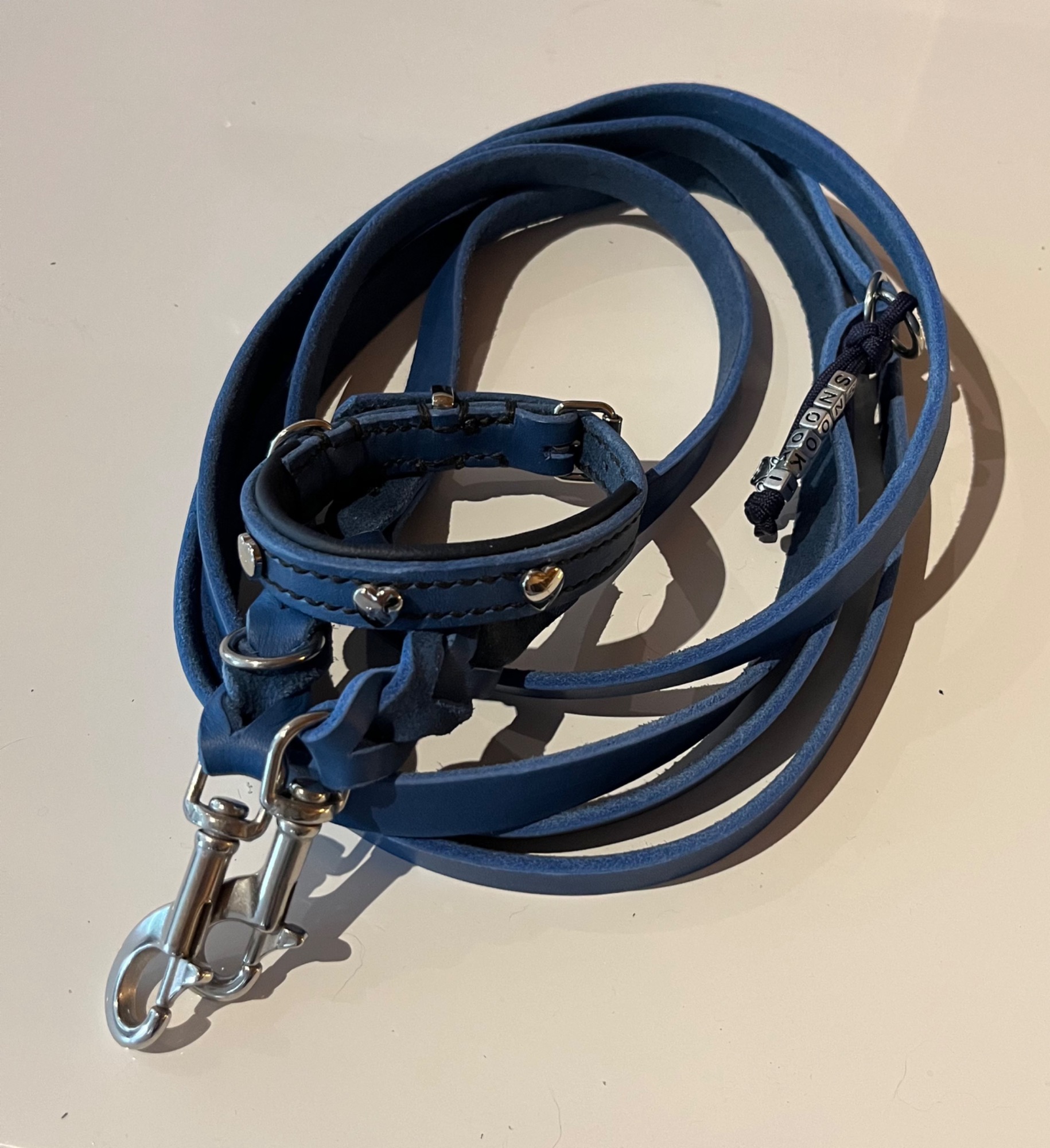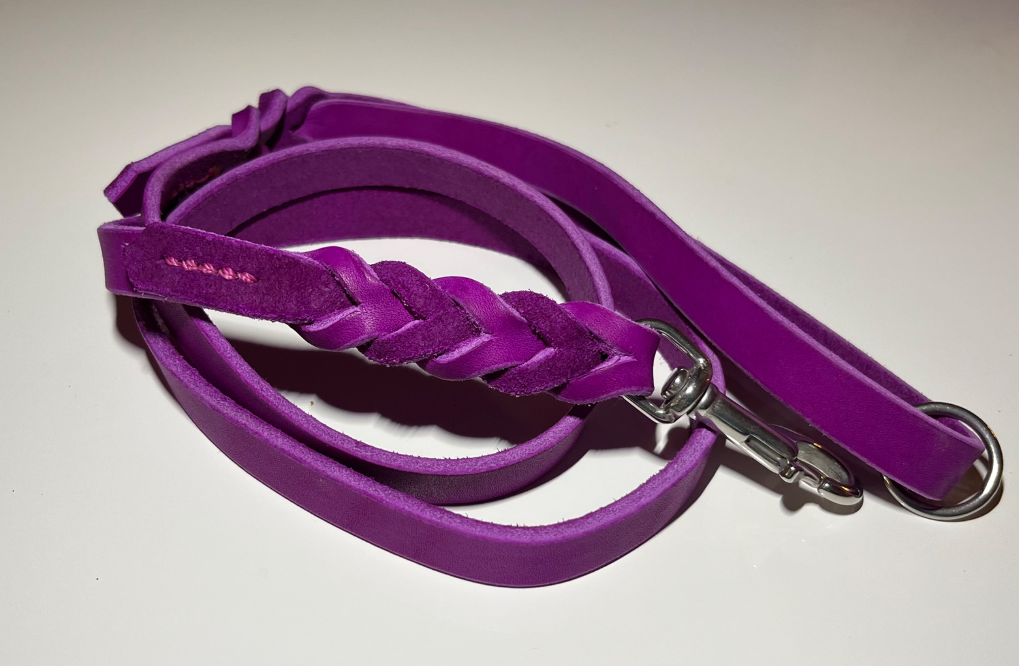 Für meine Leinen verwende ich ausschließlich Fettleder aus Deutschland. Durch die traditionelle Herstellung wird das Leder sehr robust, stabil, griffig, pflegeleicht und sehr weich.